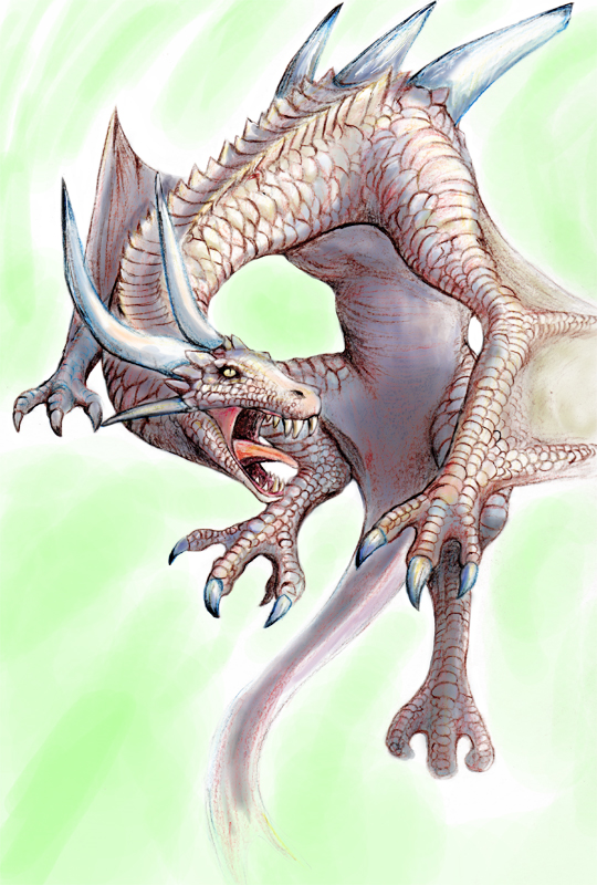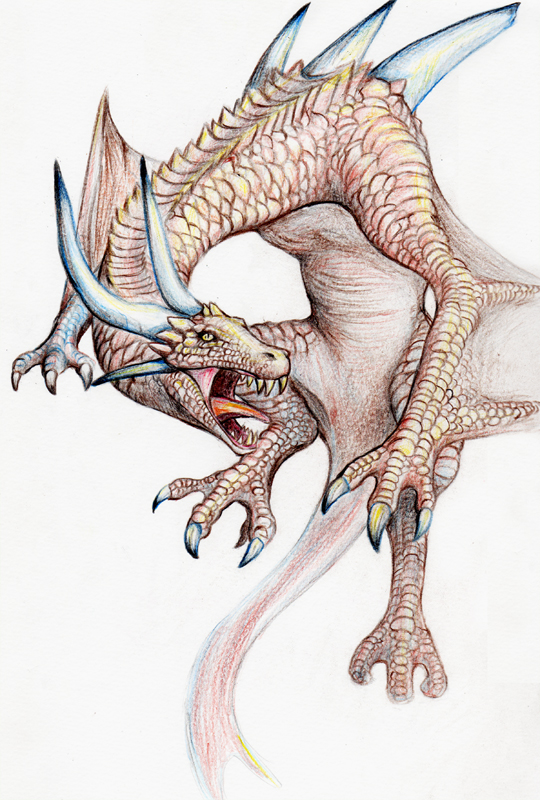 そのときに色鉛筆の塗り練習も兼ねてささっと描いた落書きヒトカゲ君。