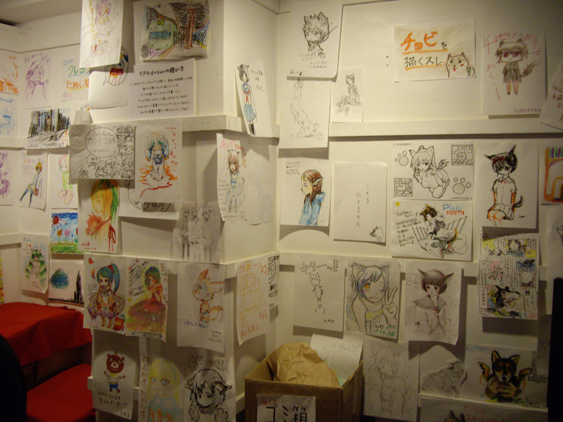 他にも落書きしたものを壁に貼れるスペースもあり、